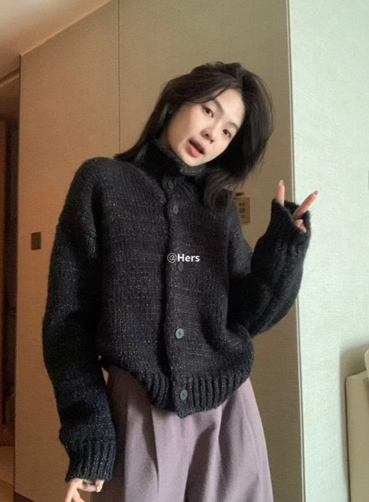 HERS> 正肩鈕扣傘擺毛衣 #10325#