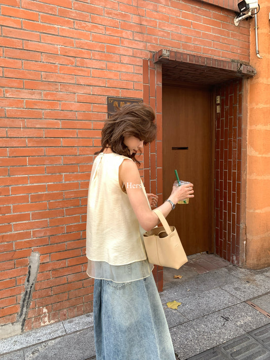 Hers - 捏摺中長款無袖背心&卡其短褲 80422#