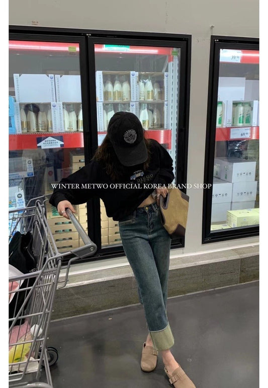 Hers - 配腰帶 微喇牛仔褲(有絨or 無絨) 92723#
