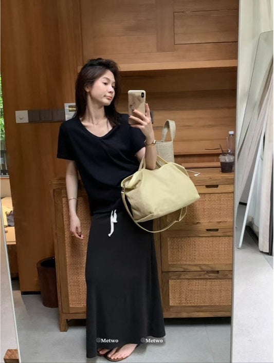 METWO> 顯瘦後開衩絲絨半裙 2102#