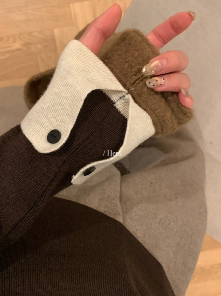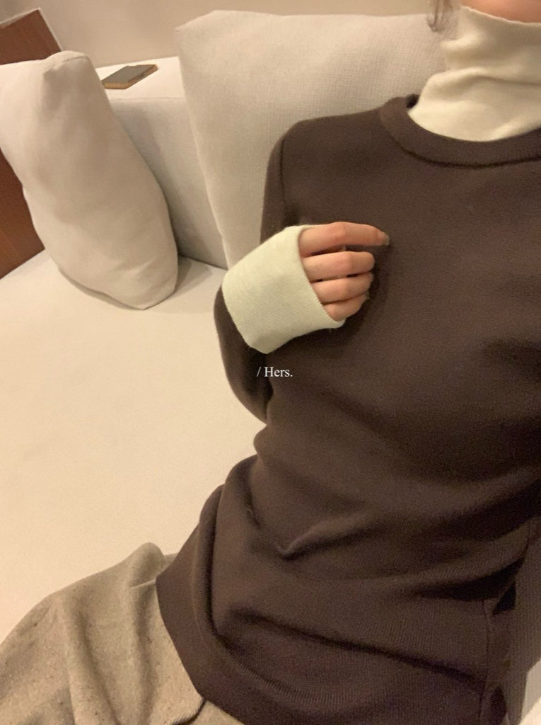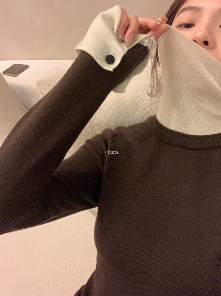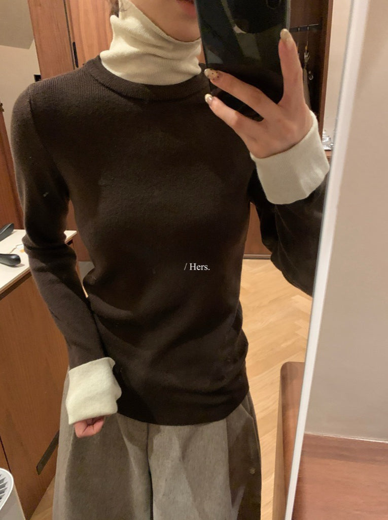 Hers - 拼接高領針織衫 92737#