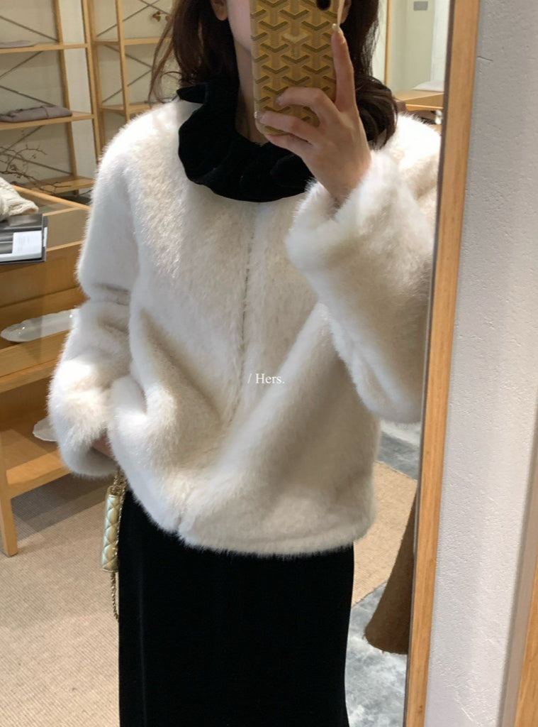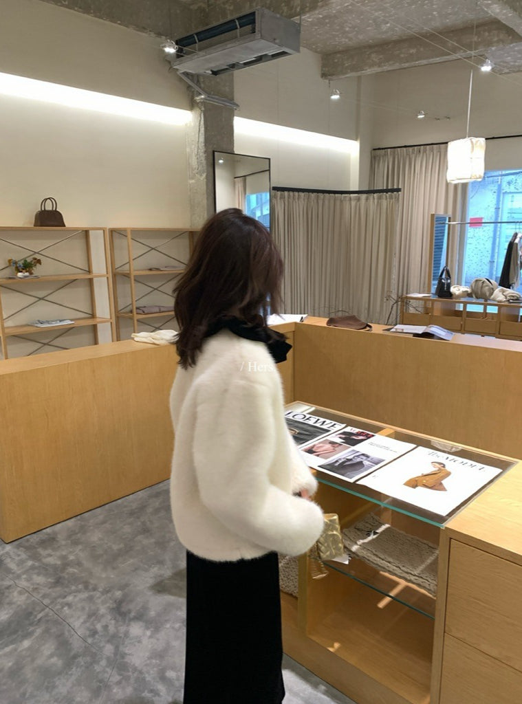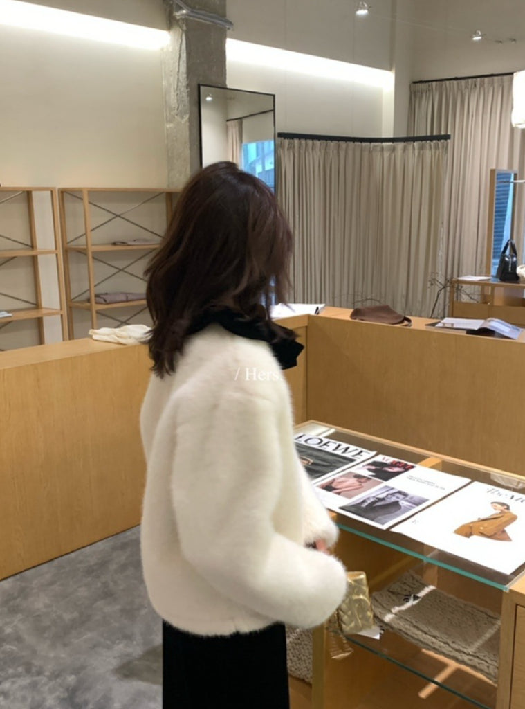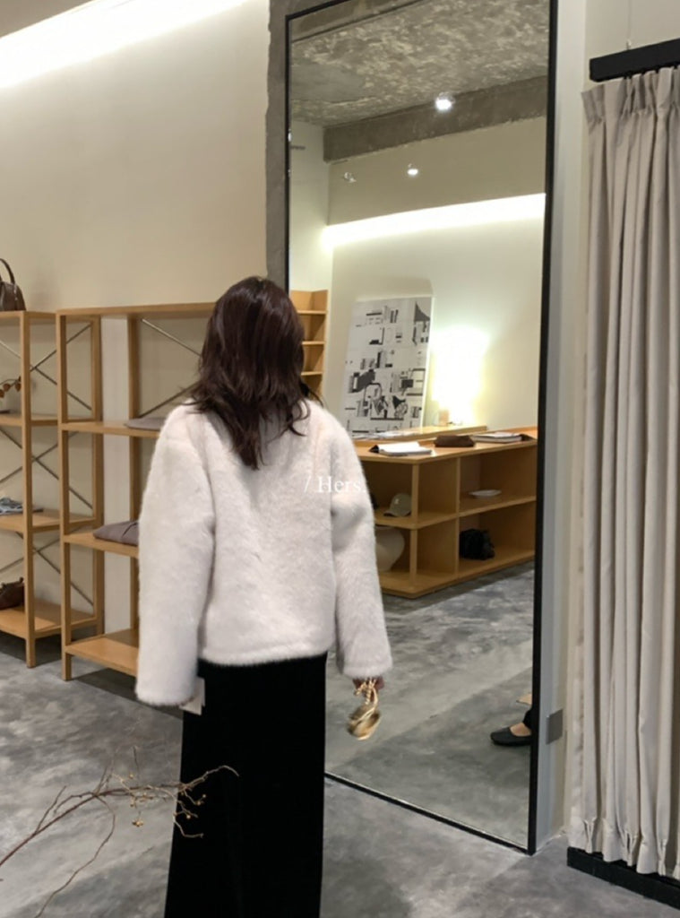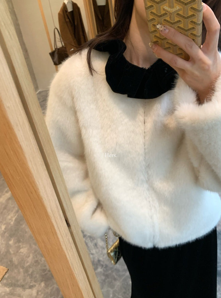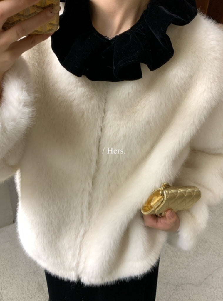 seeUbye - 絲絨波邊領貴氣拉鏈外套 92653#