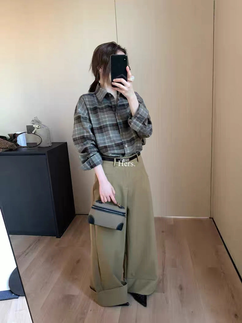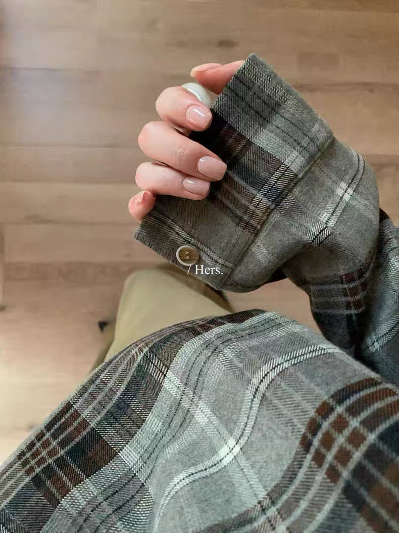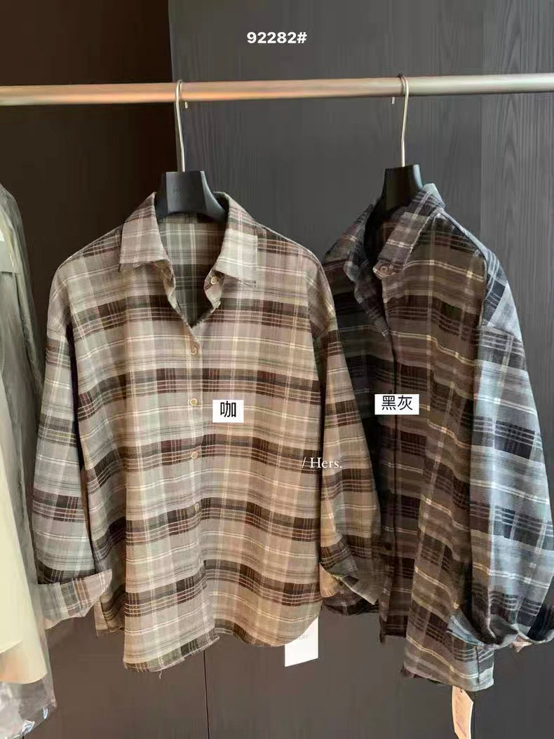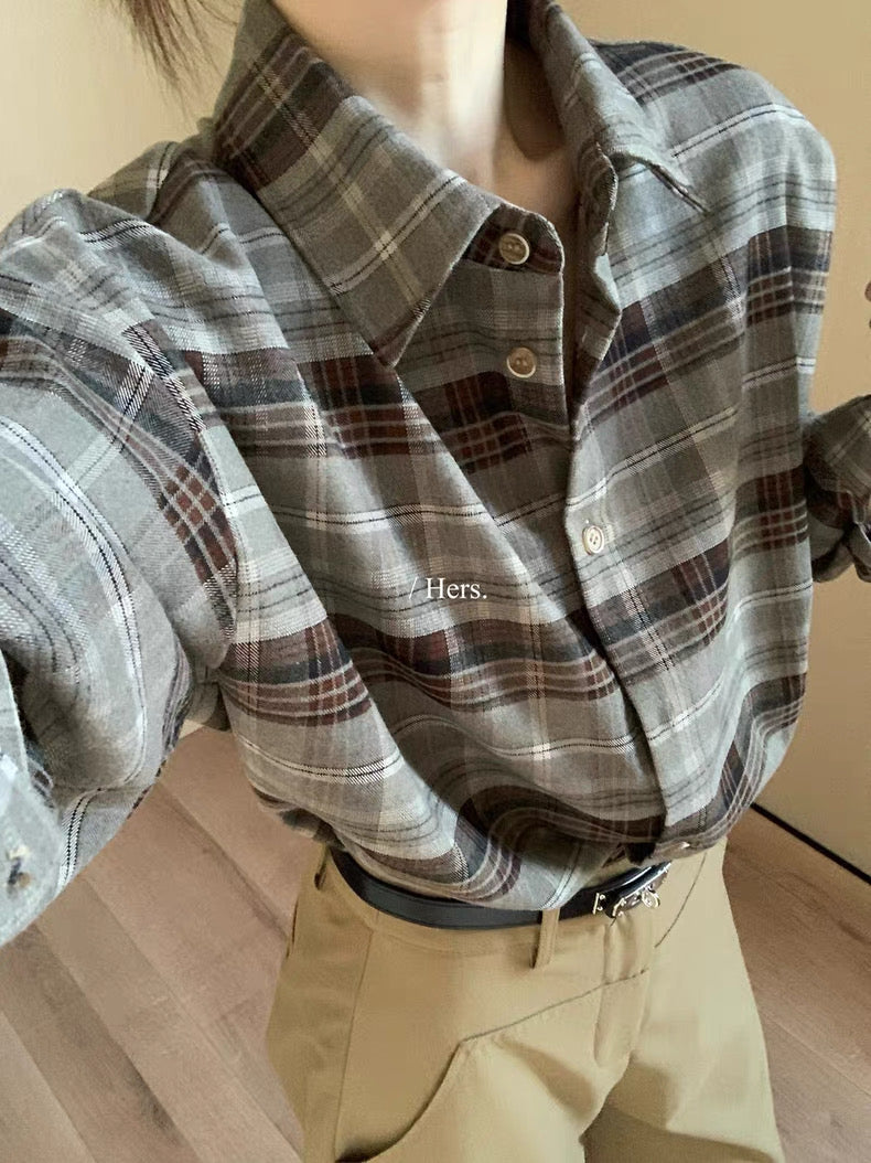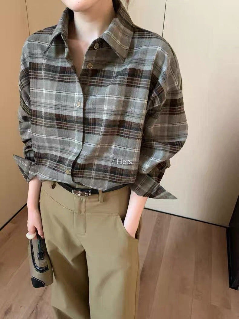 HERS - 寬鬆格紋襯衫 92282#