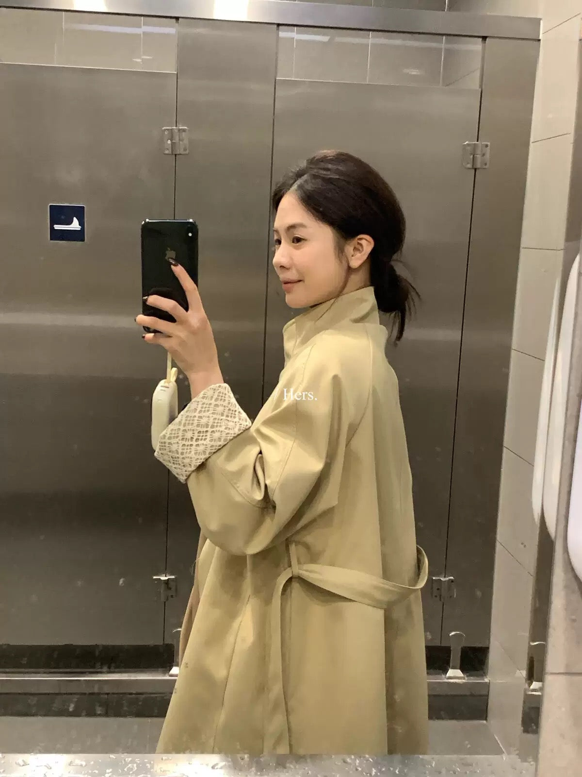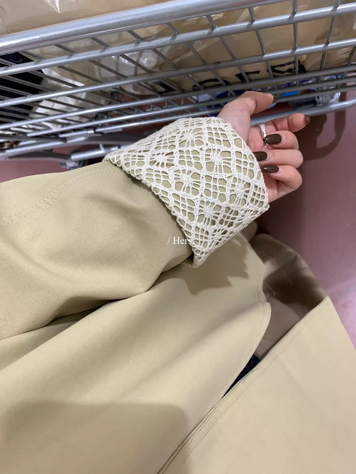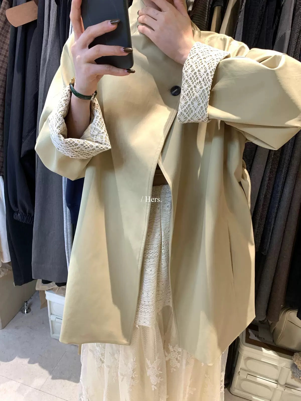 HERS - 蕾絲袖卡其立領風衣 92308#