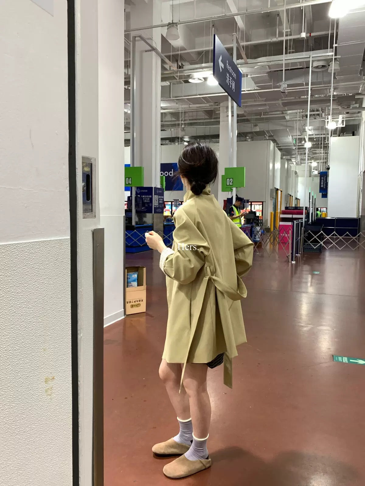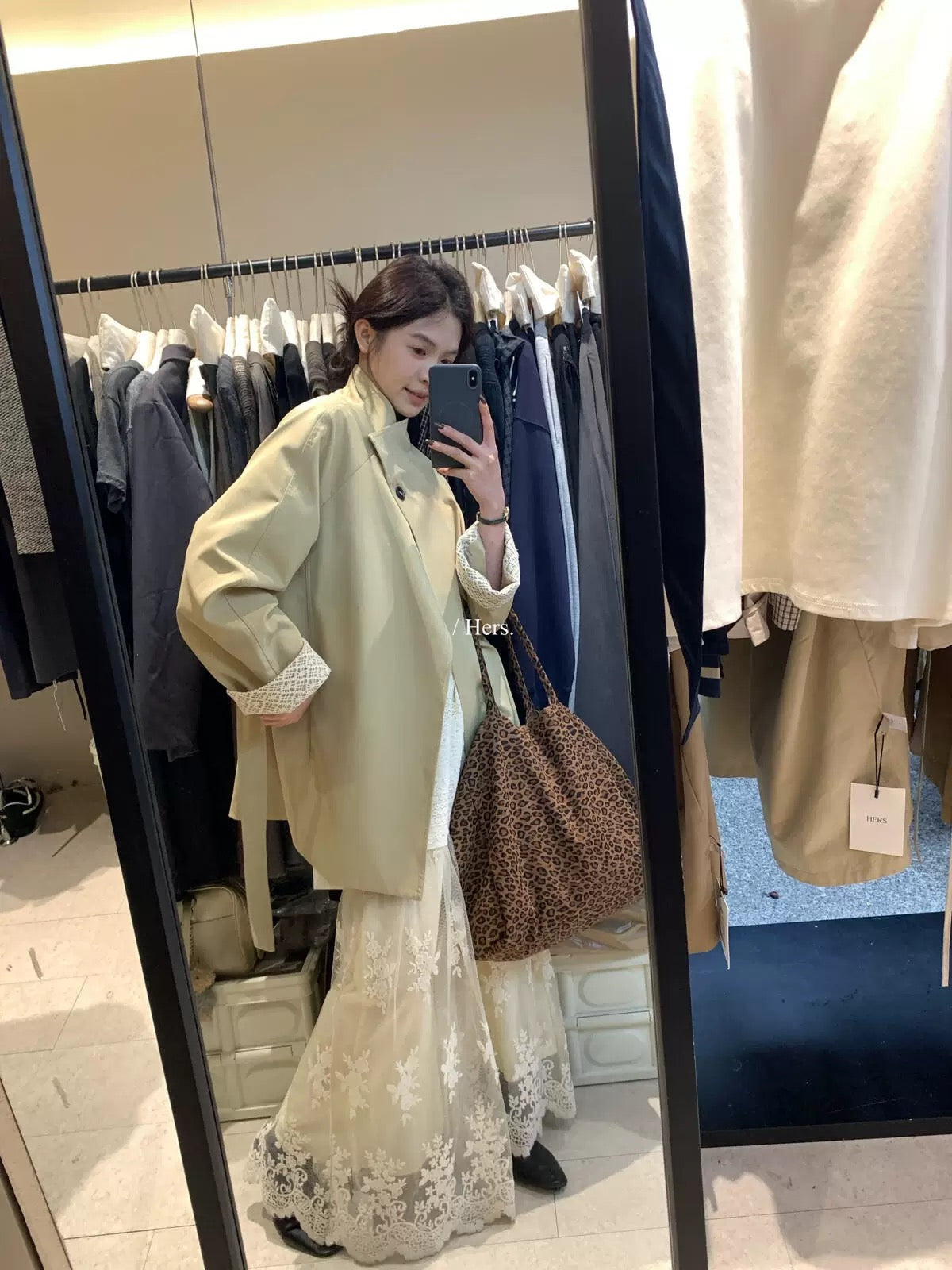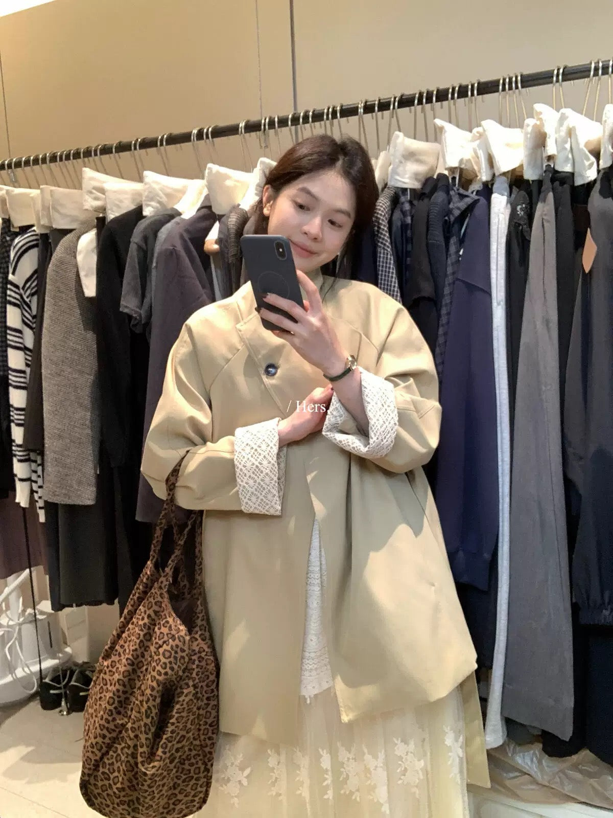 HERS - 蕾絲袖卡其立領風衣 92308#
