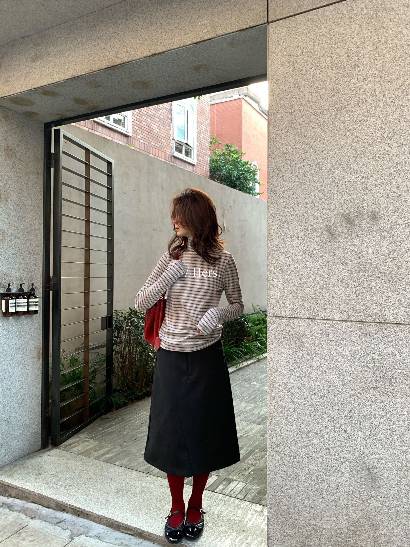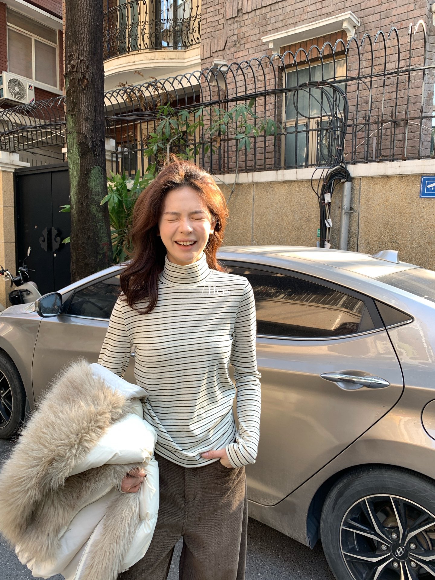 Hers - 高領條紋打底 92799#