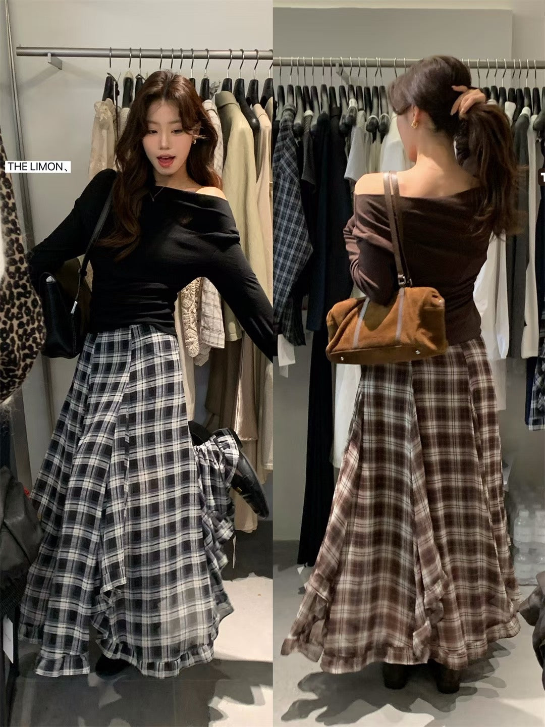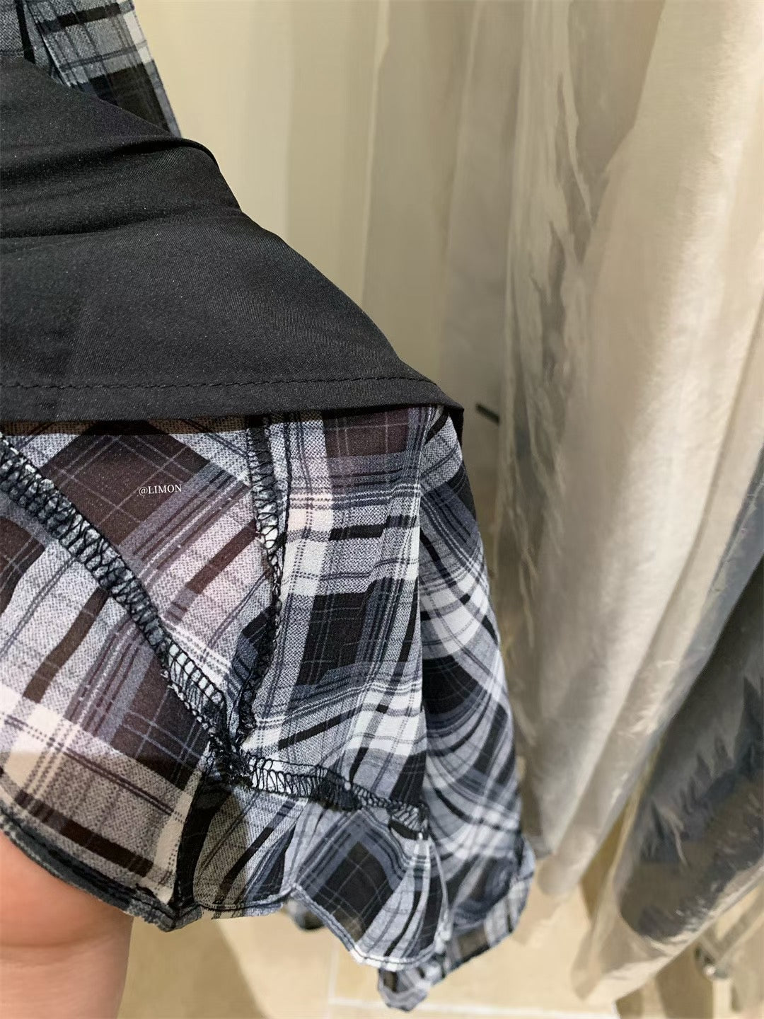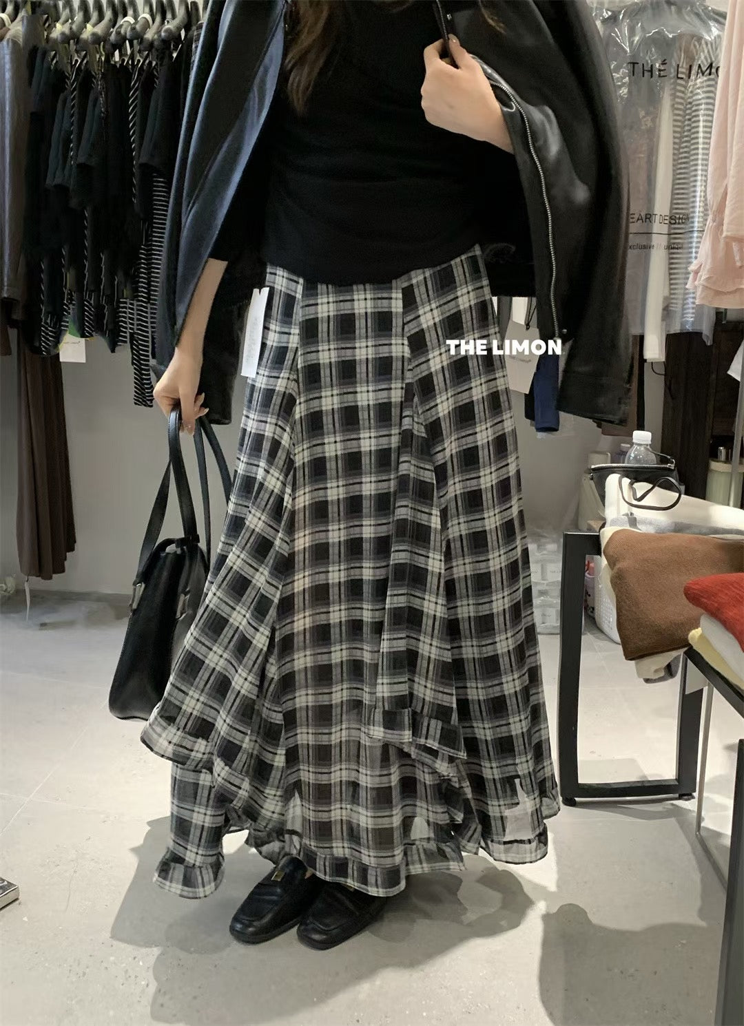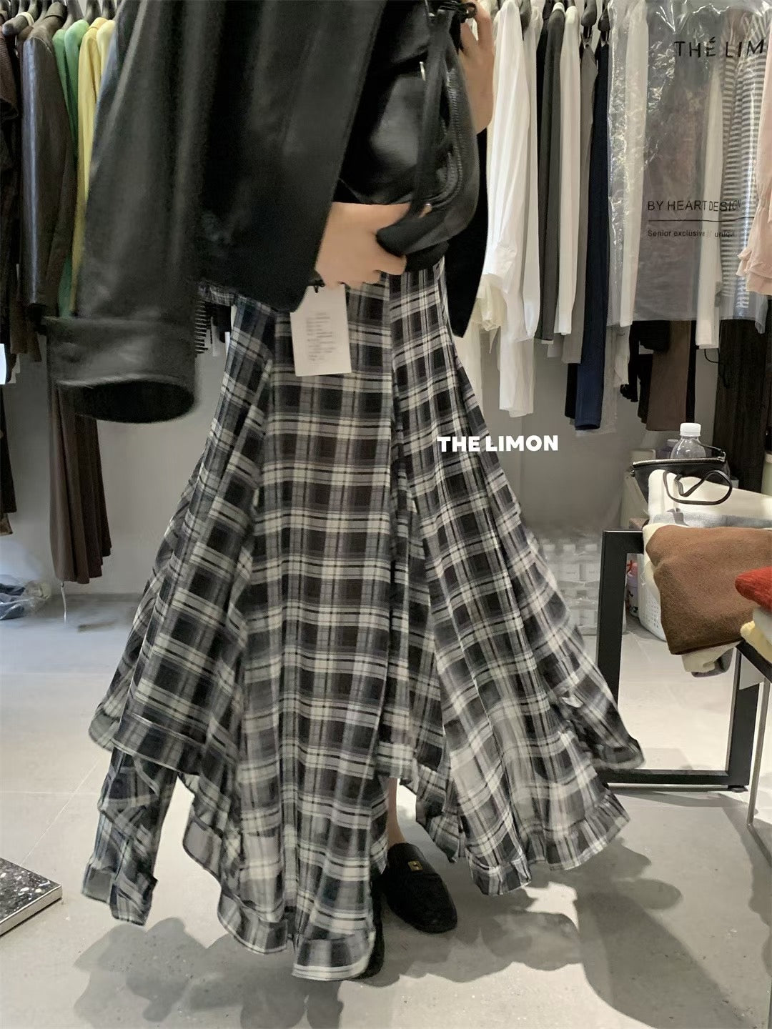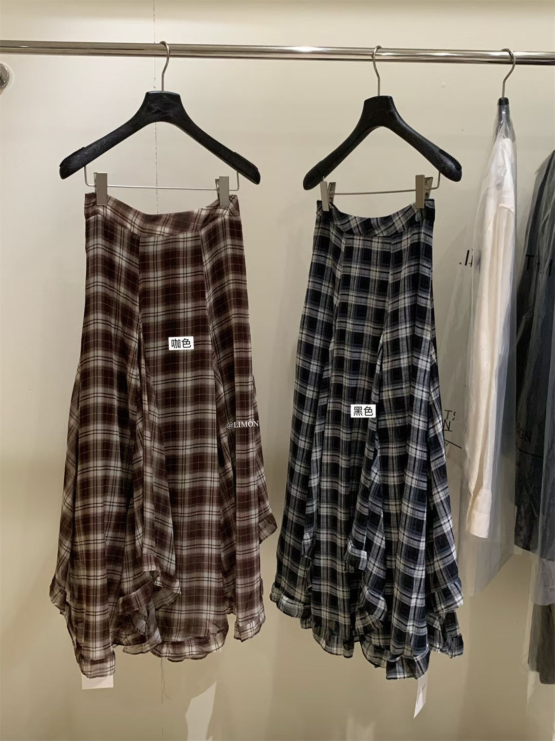 THE LEMON> 不規則大裙襬格紋半裙 9015#