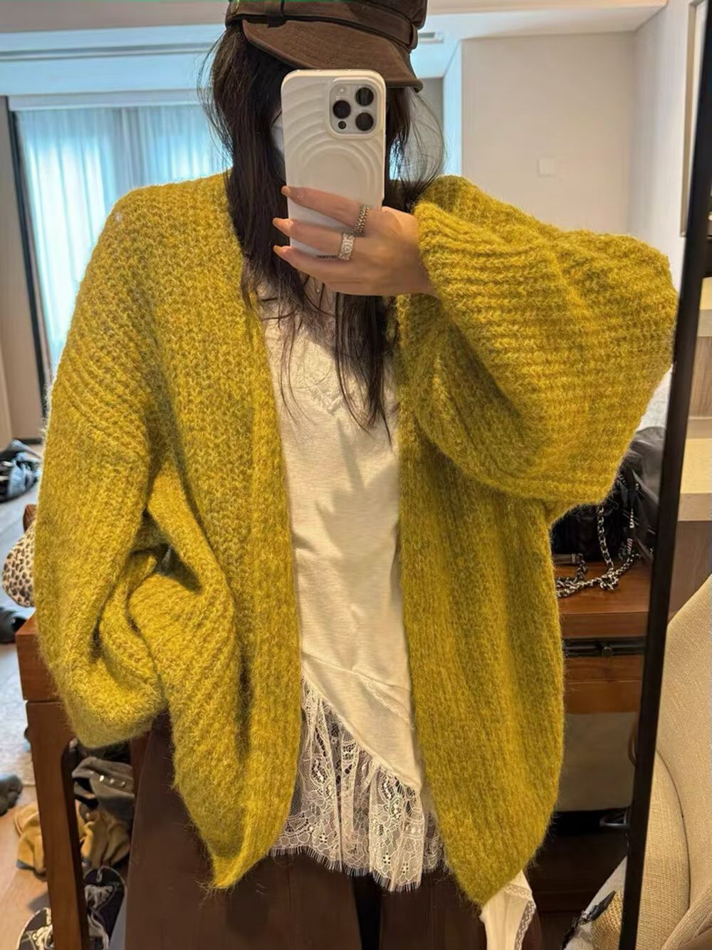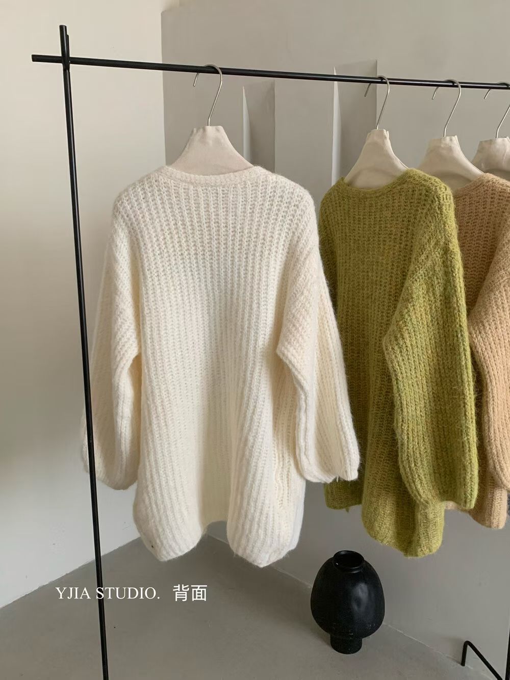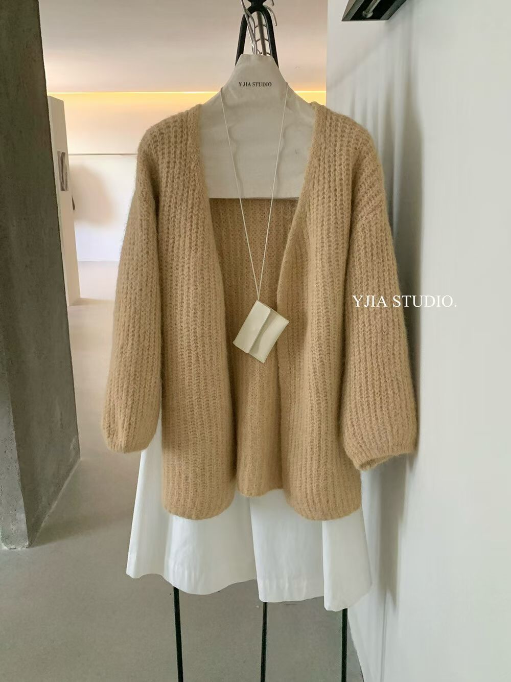 YJIA - 慵懶燈籠袖大開衫毛衣 687#