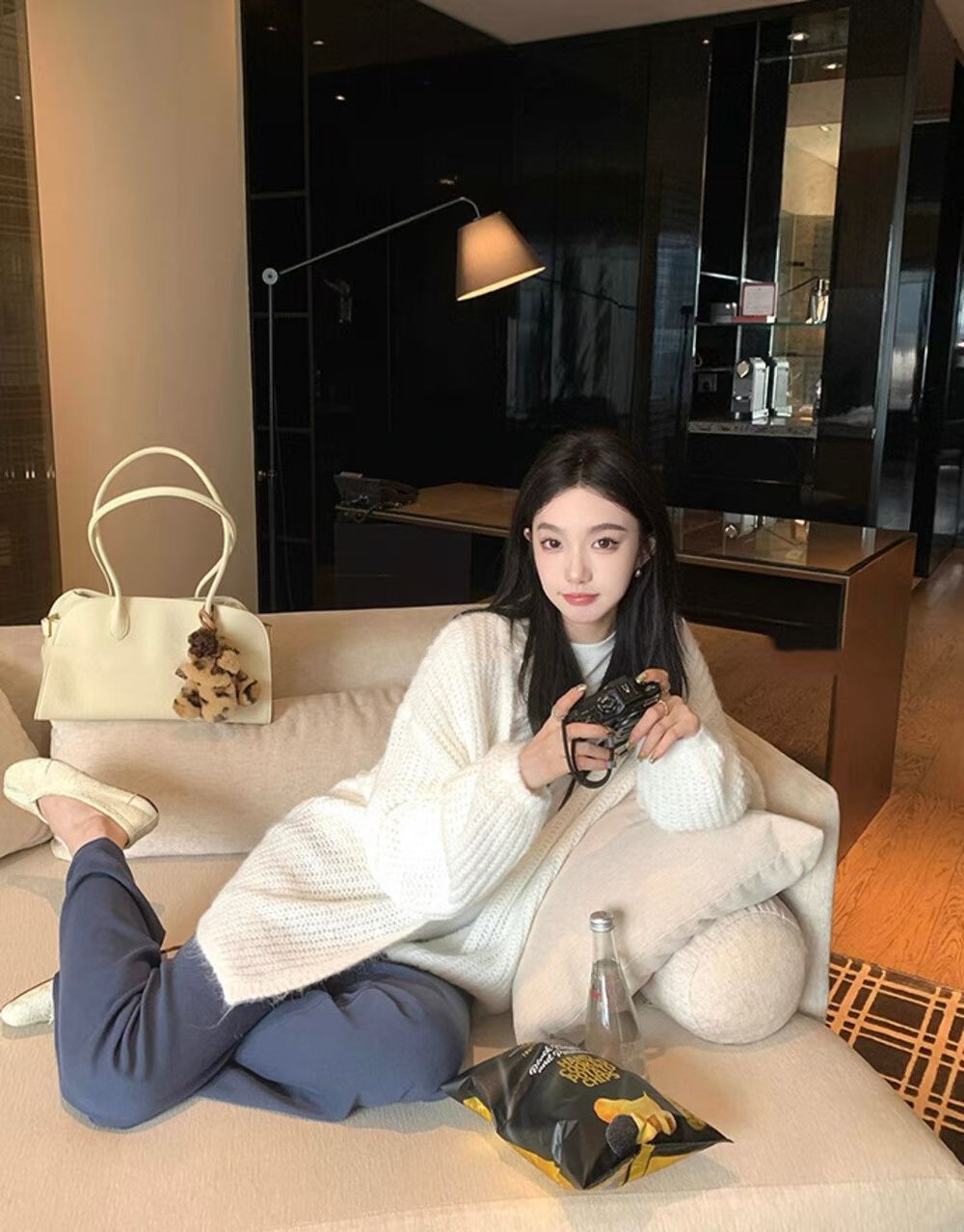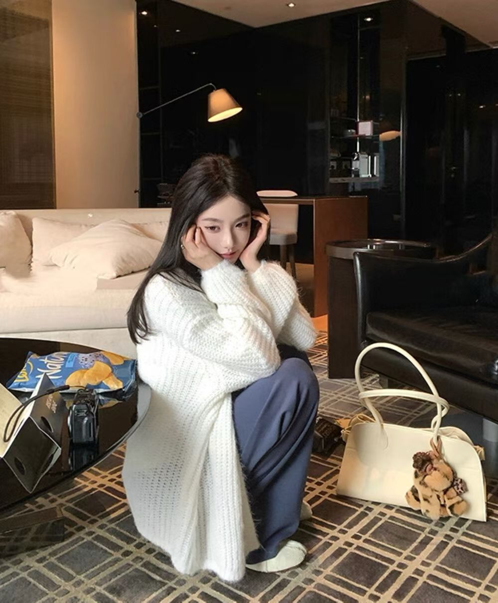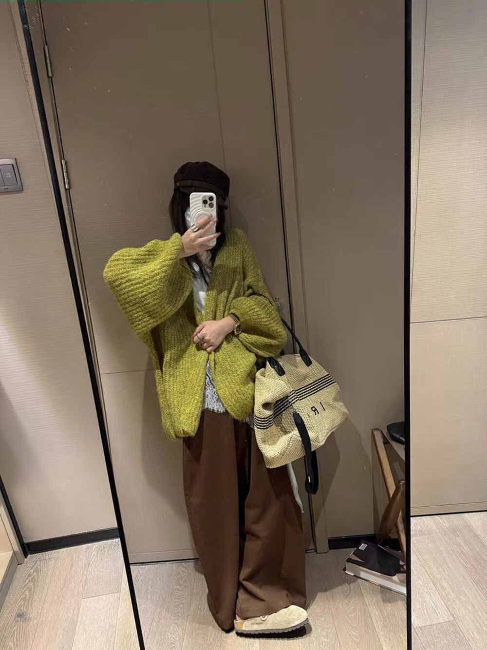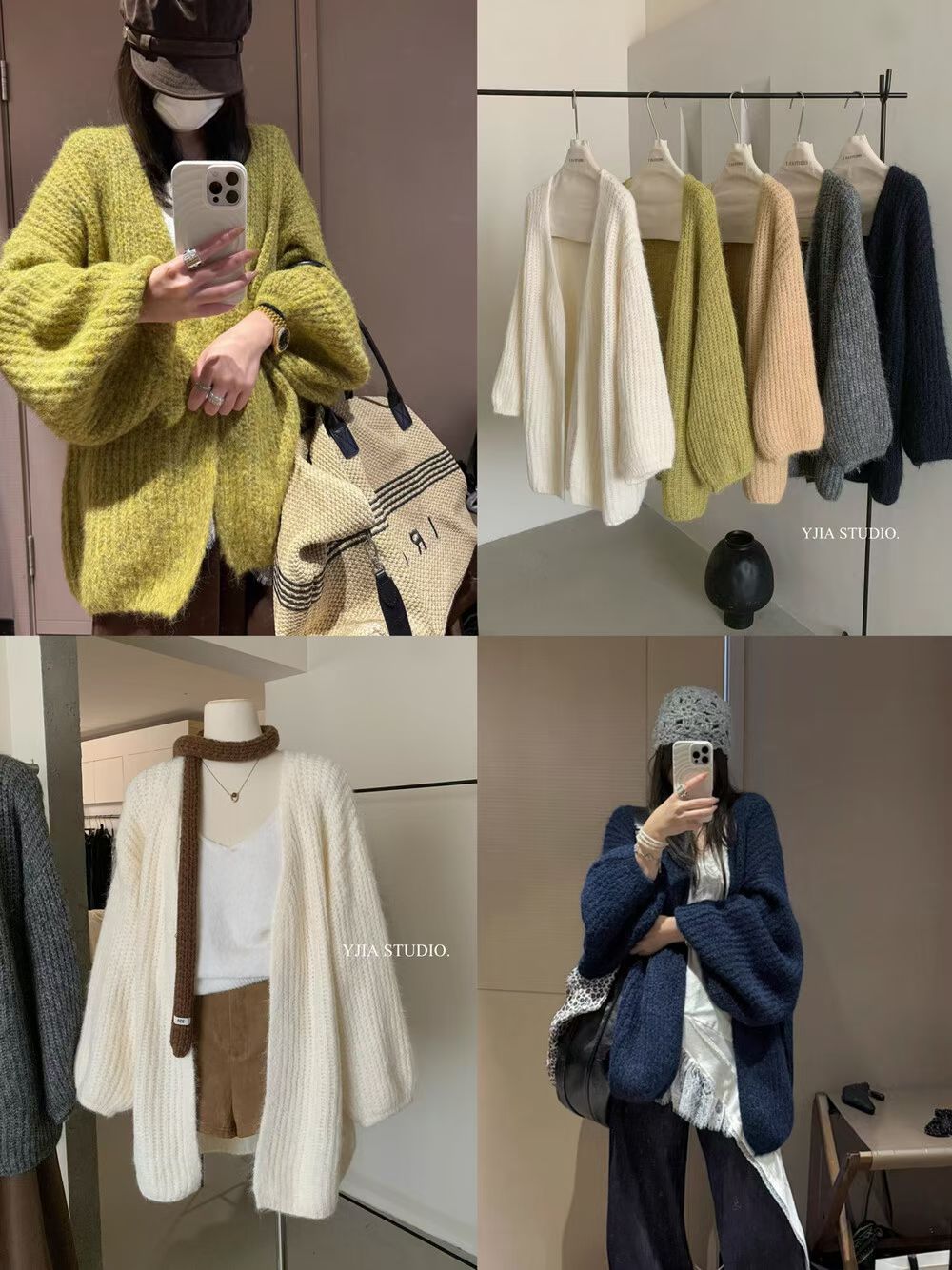 YJIA - 慵懶燈籠袖大開衫毛衣 687#