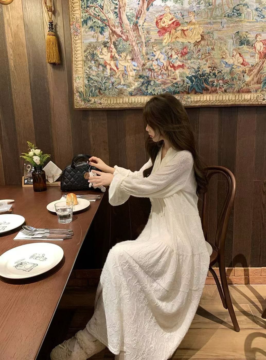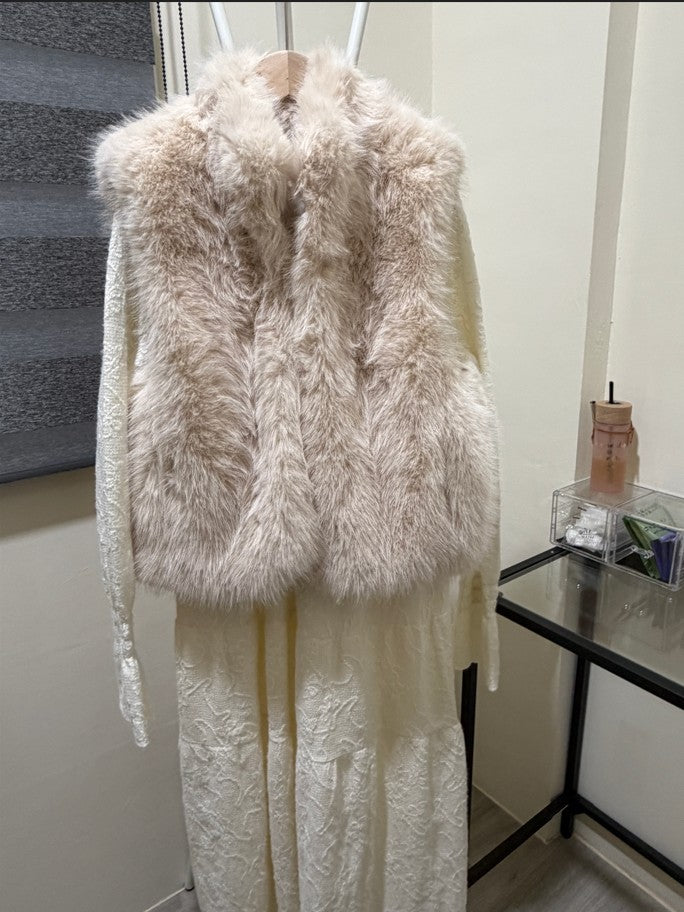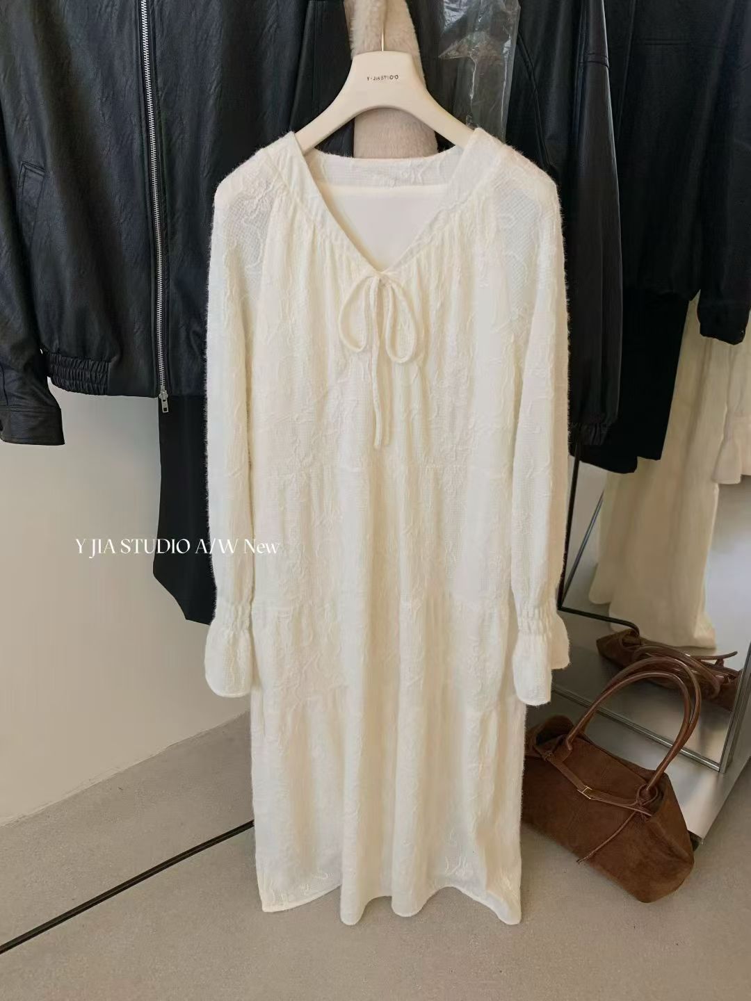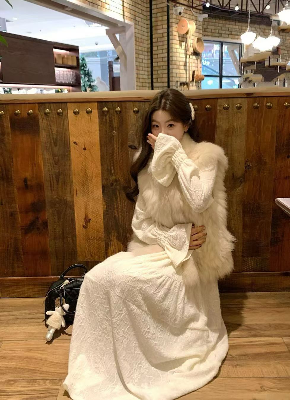 YJNN - 仙氣刷絨緹花分割連身裙洋裝&奶茶馬甲 8513#