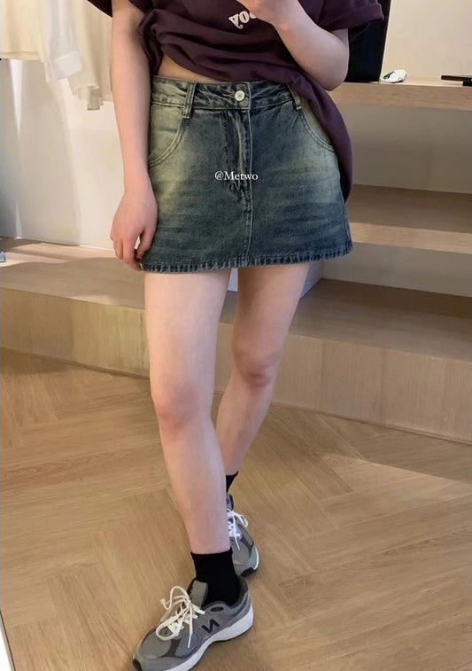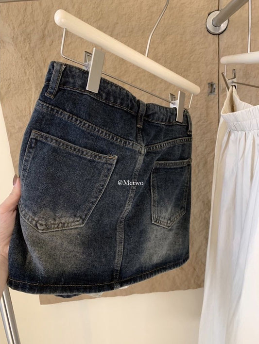 OfertaMETWO> 雙口袋!少女感牛仔半身裙sml 1153#