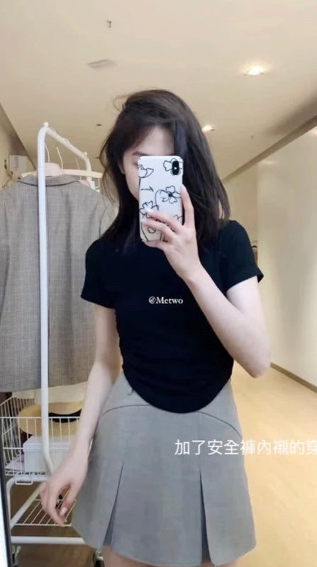 METWO>高級面料!高腰線百褶裙 (帶安全褲內襯) QZ8111#