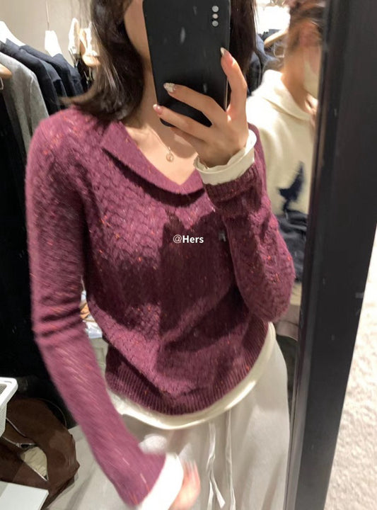 OfertaHERS> 混色V領拼接針織衫 10343#