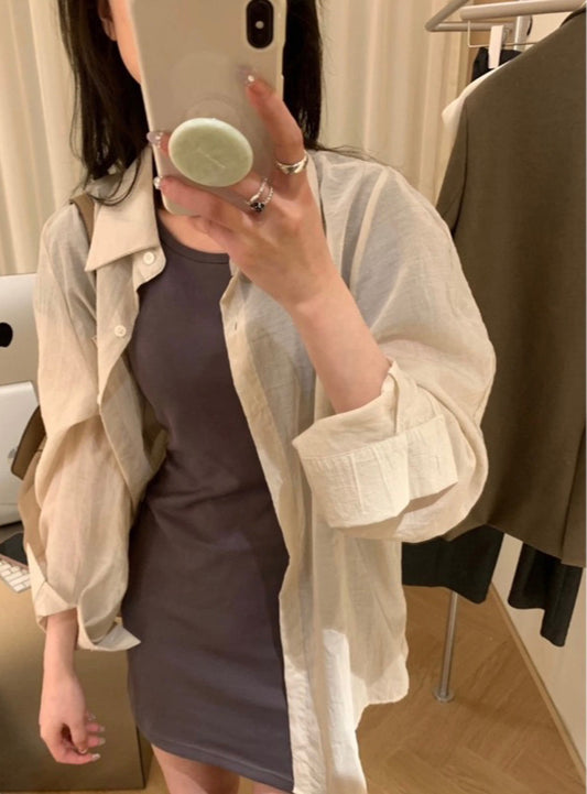 AgotadoMETWO> 炭灰棉長T裙&防曬不易皺襯衫 8885#
