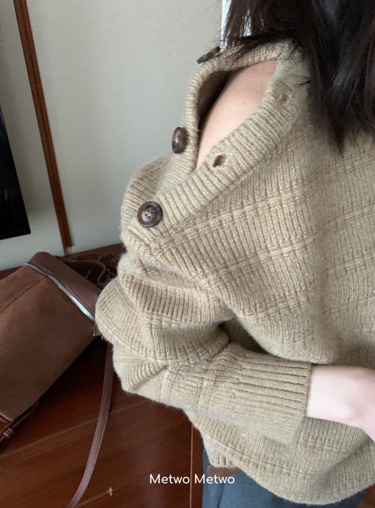 OfertaMETWO>鈕扣露肩毛衣 8162#