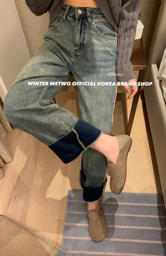OfertaMETWO>抓毛闊腿2穿牛仔褲 8809#