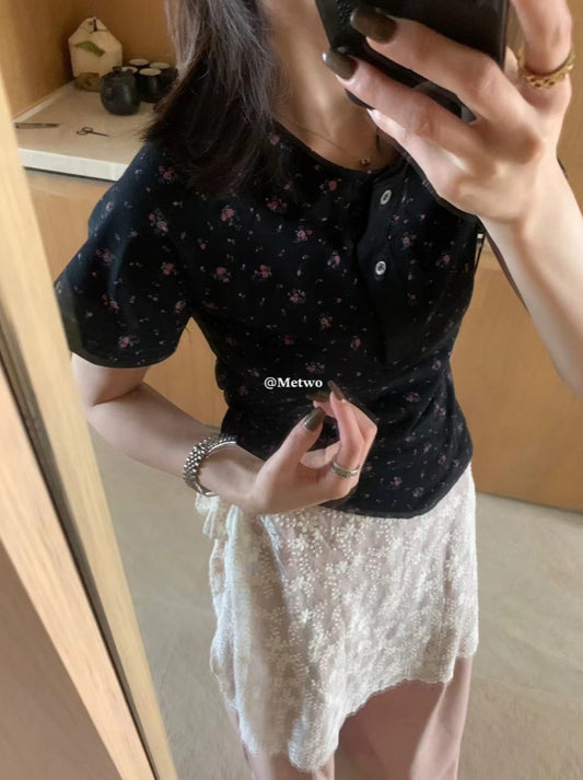 OfertaMETWO>小飛袖正肩碎花T 08031#