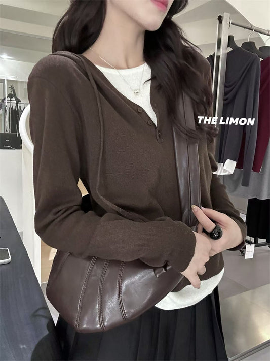 OfertaTHE LEMON - 撞色連帽針織上衣 5100#