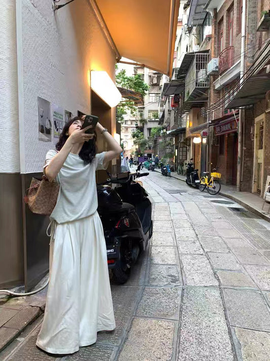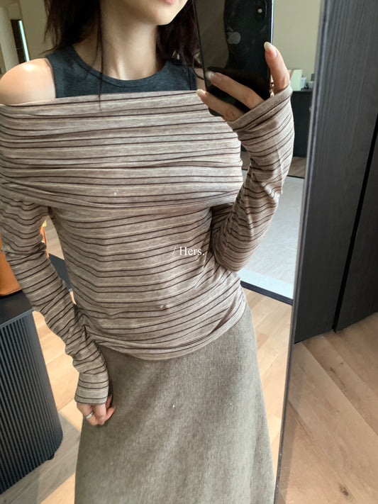 OfertaHERS - 條紋一字肩兩件套 92426#
