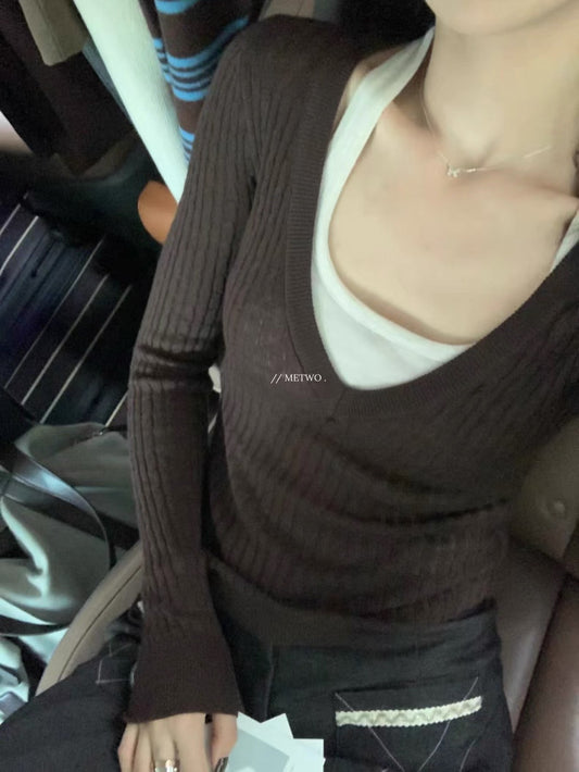 AgotadoMETWO - 掛脖純欲針織兩件套 8846#