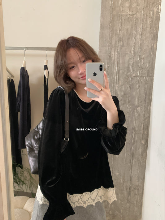 OfertaI MISS - 蕾絲絲絨上衣 60925#
