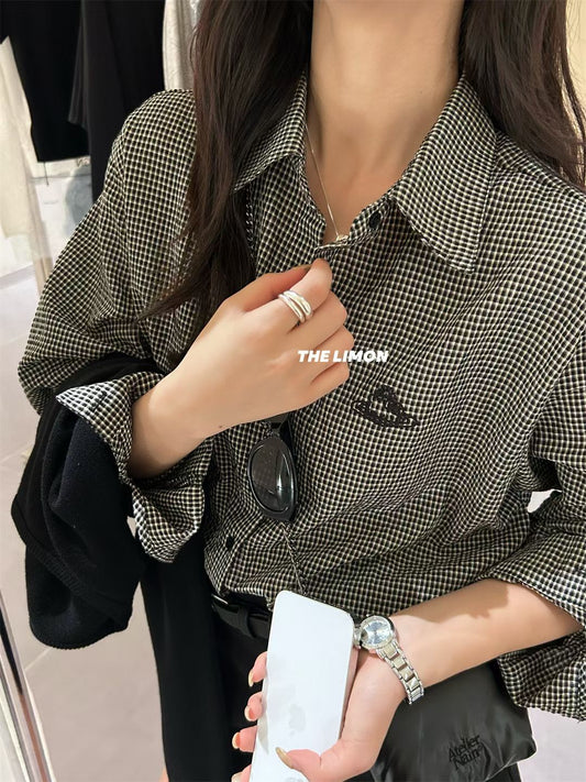 OfertaHERS - 寬鬆格紋襯衫 92282#
