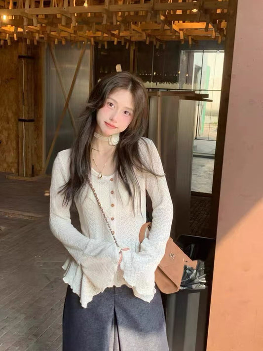 OfertaYJIA - 氣質喇叭袖收腰顯瘦小衫 7715#