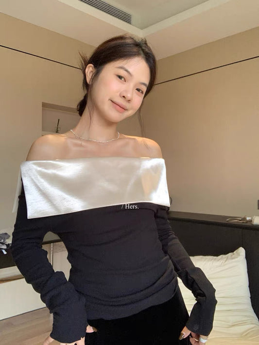 OfertaHERS - 撞色一字肩針織衫 92347#