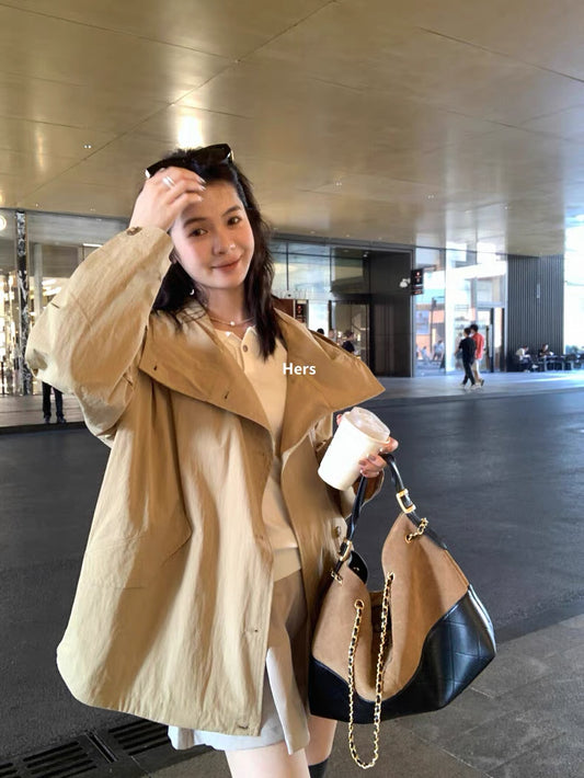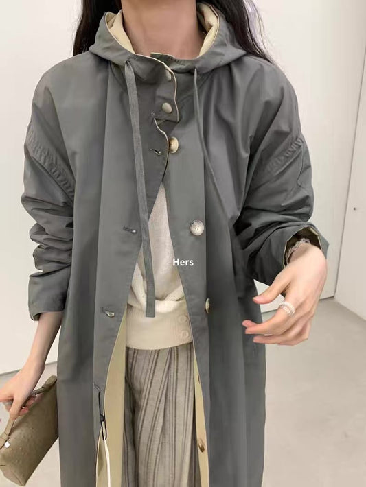 OfertaHERS> 休閒連帽長款風衣 92049#