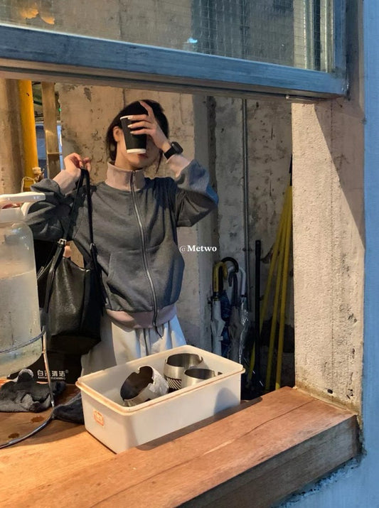 OfertaMETWO> 灰拼粉棒球外套 2101#