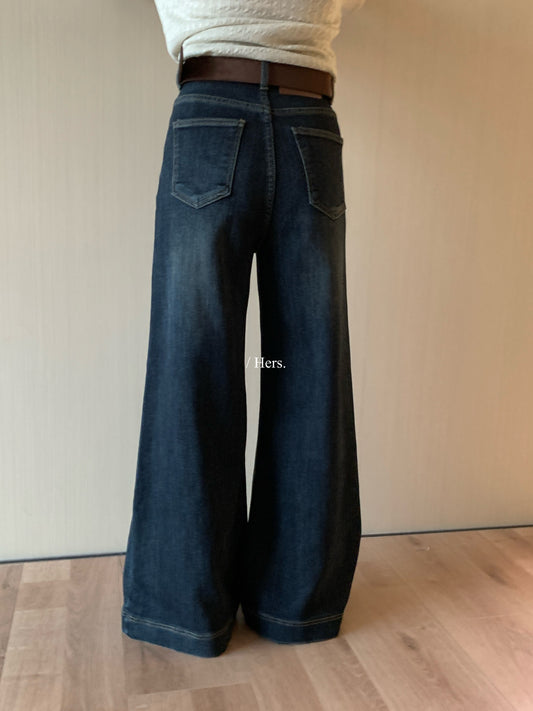 Hers - 配腰帶 微喇牛仔褲(有絨or 無絨) 92723#