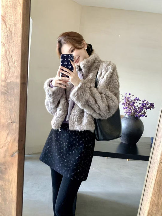 ObralYJNN - 皮毛一體拉鍊款皮草外套 7889#