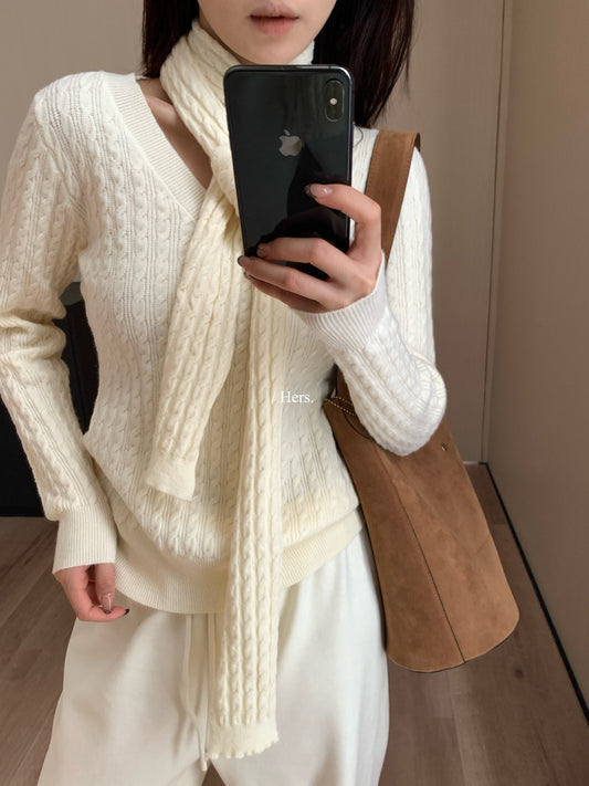 ObralseeUbye - 帶圍巾V領針織 92810#