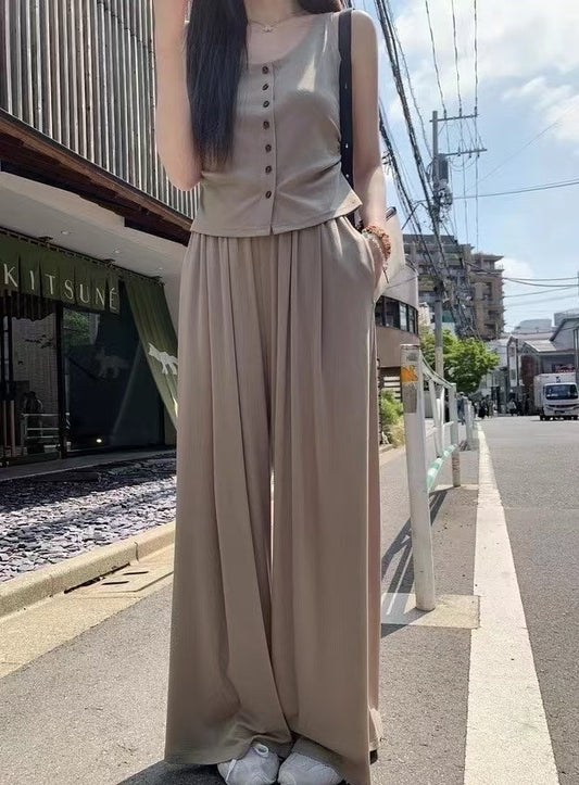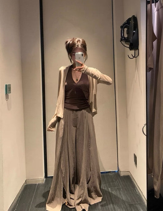 NENE - 簡約開衫+掛勃背心+設計感奏摺開叉闊腿庫 3件套 6057#
