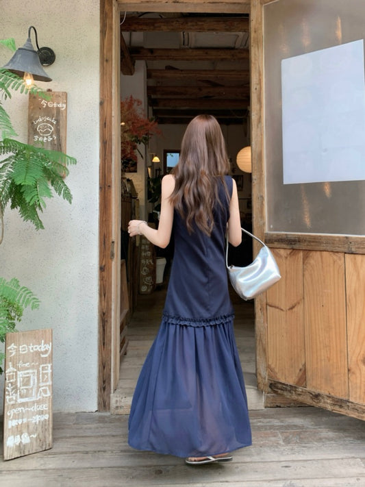 ObralNENE> 木耳邊網紗拼接背心連衣裙 2324#