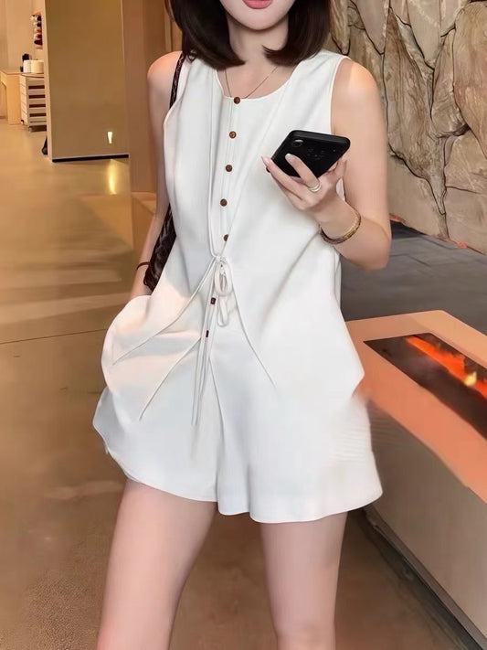 NENE - 綁帶背心 條紋休閒褲套裝 63363#