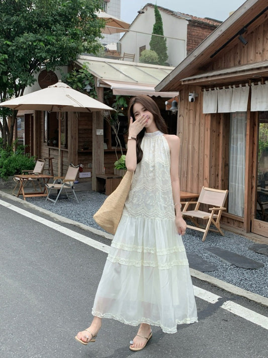 ObralNENE> 木耳邊刺繡掛脖連衣裙 2338#