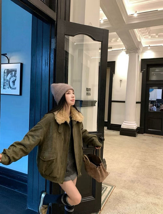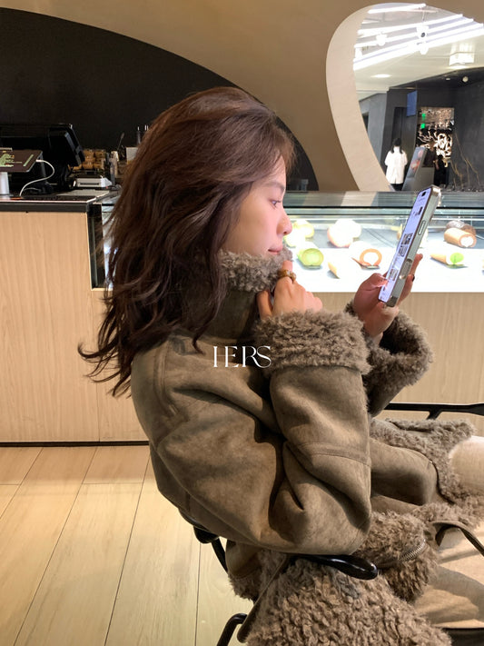 ObralYJNN - 城市麂皮夾棉毛毛外套 8395#