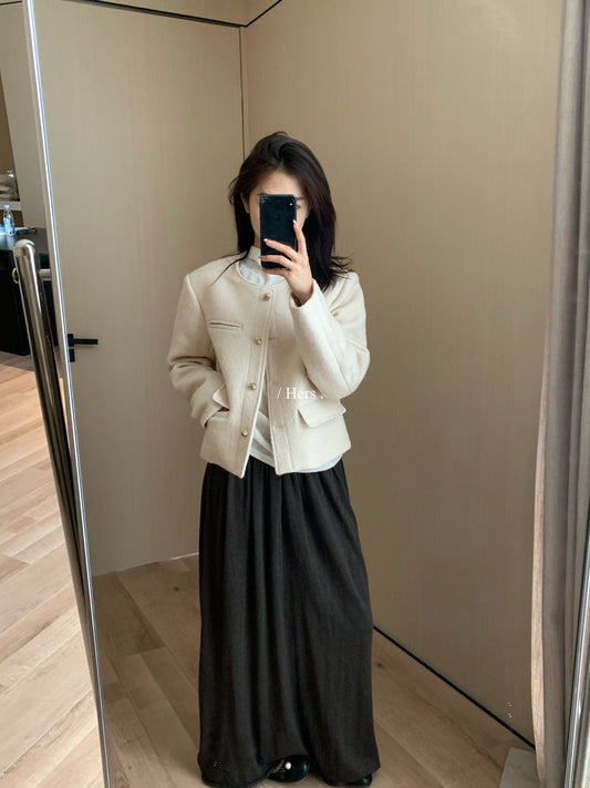 Hers - 粗花毛呢夾棉小香風外套 92548#