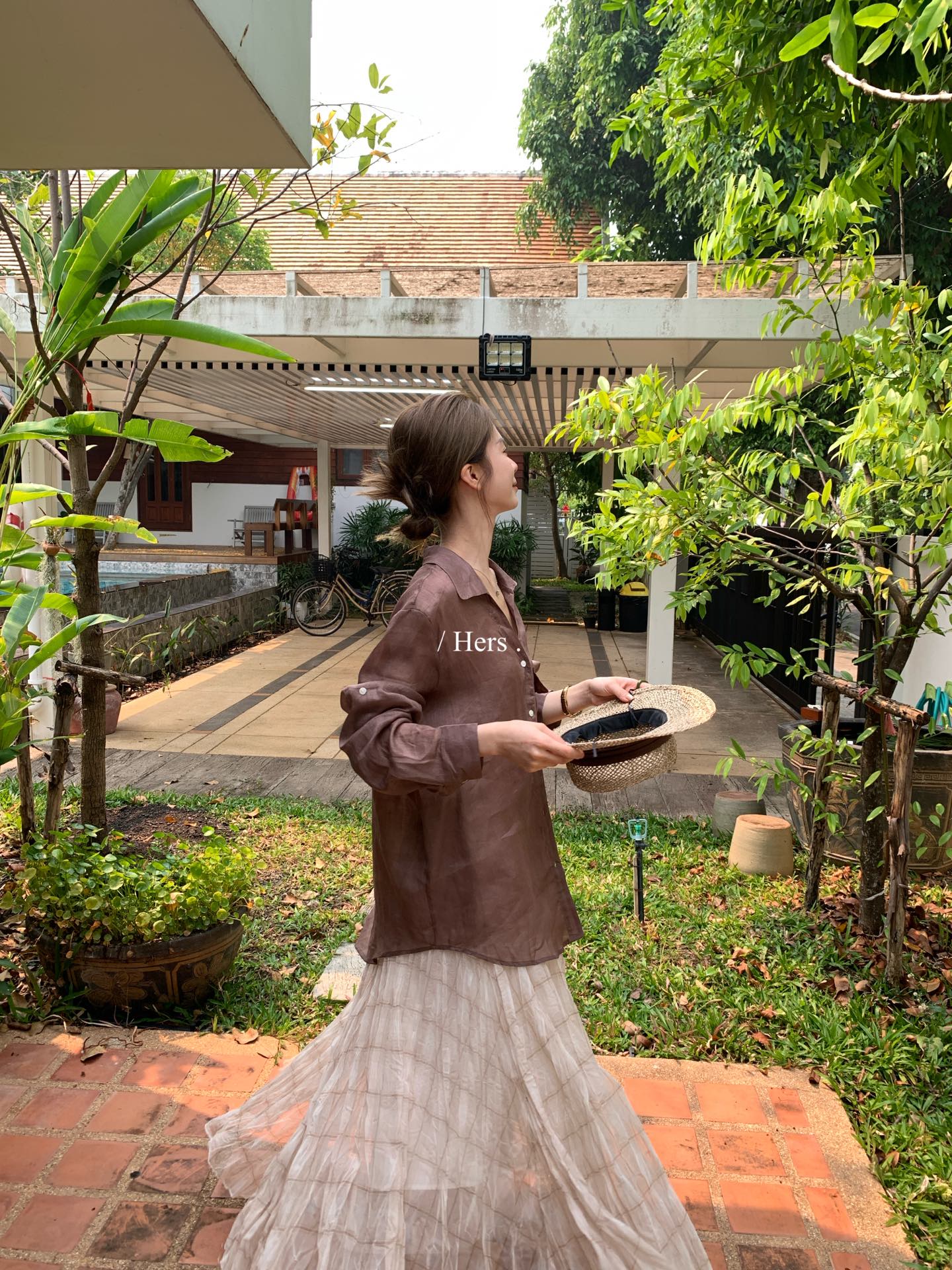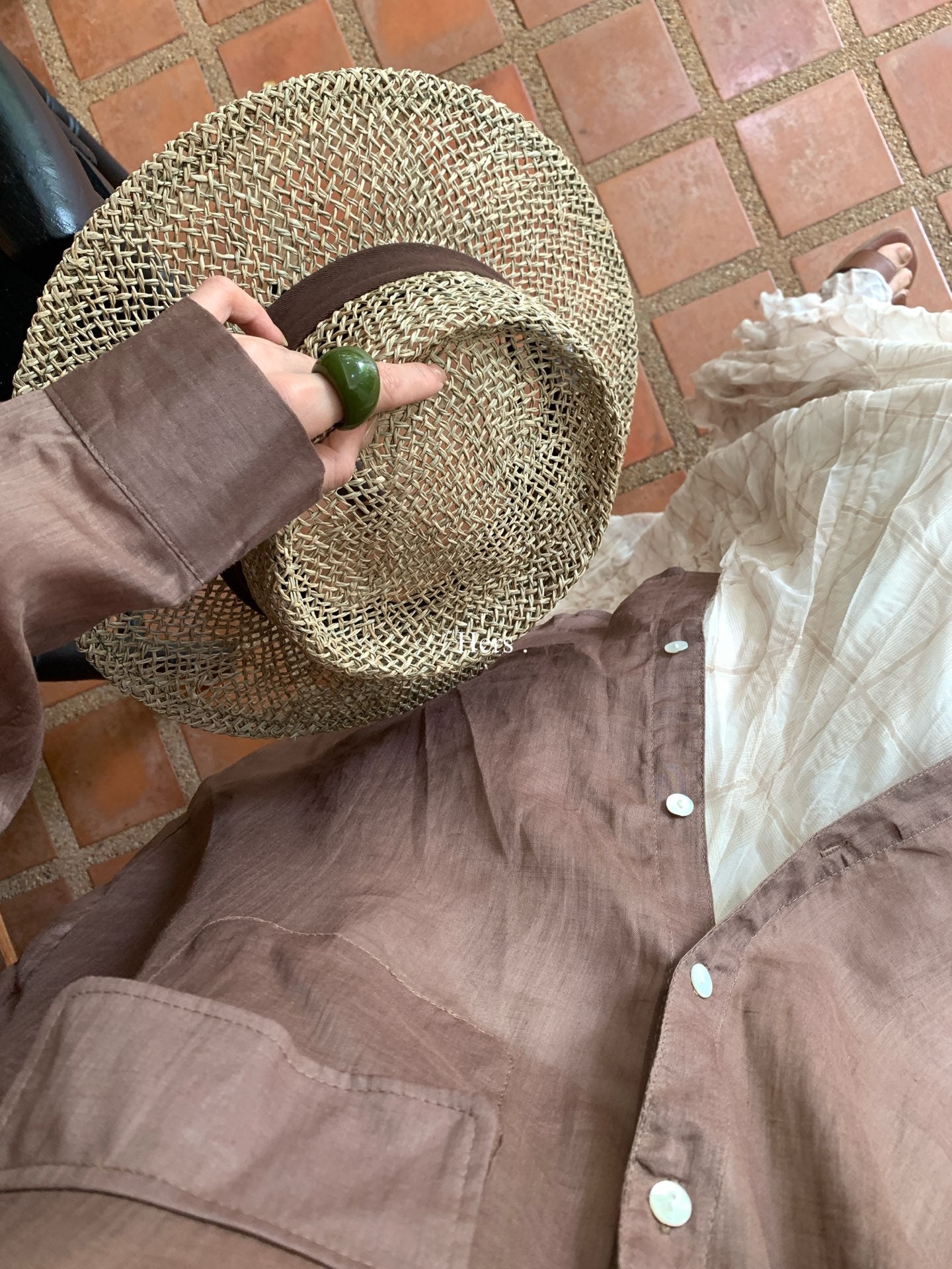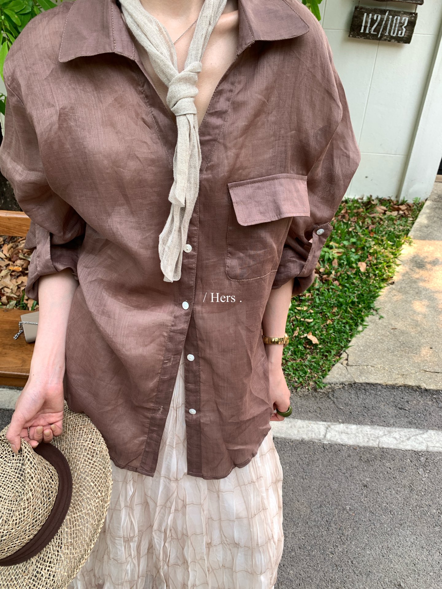 Hers - 100苎麻v領襯衫 80392#