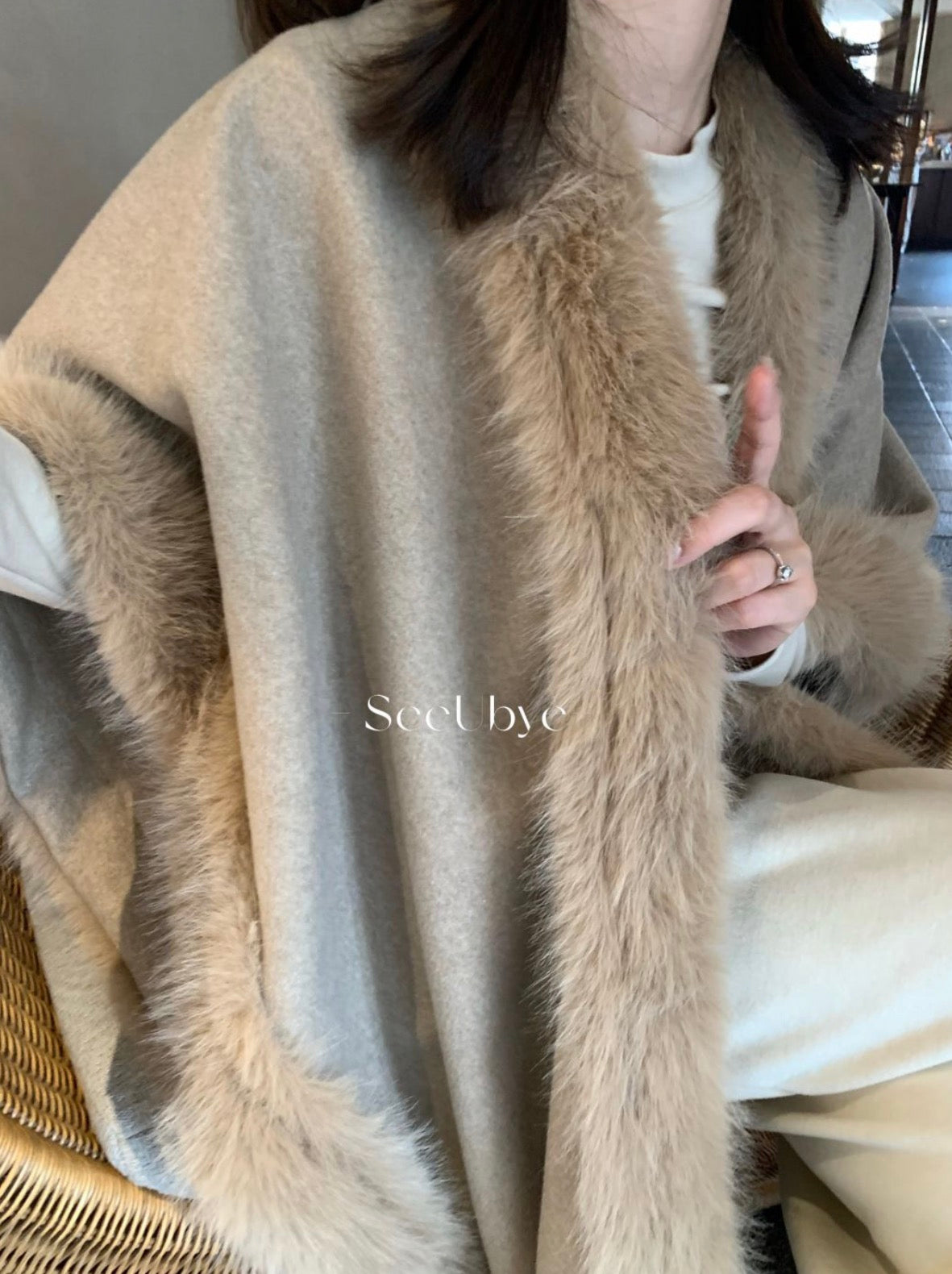 seeUbye - 人生狐狸毛斗篷 溫暖壁爐 702#