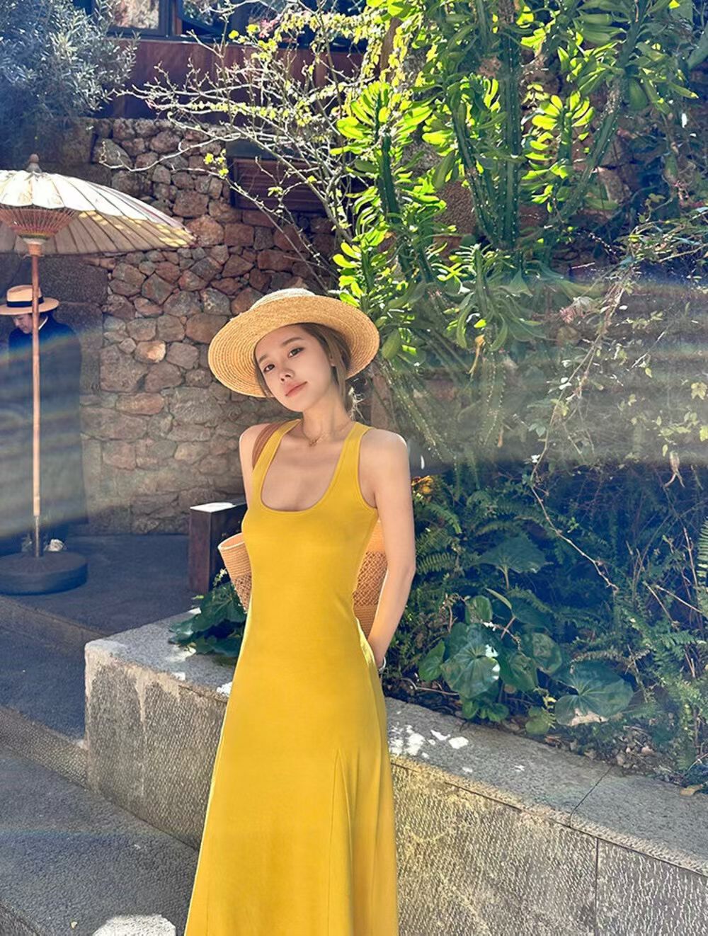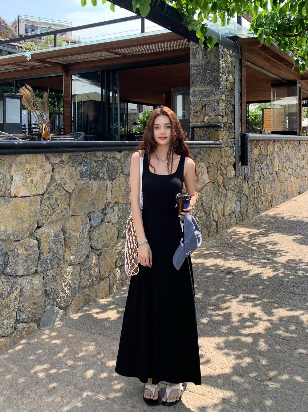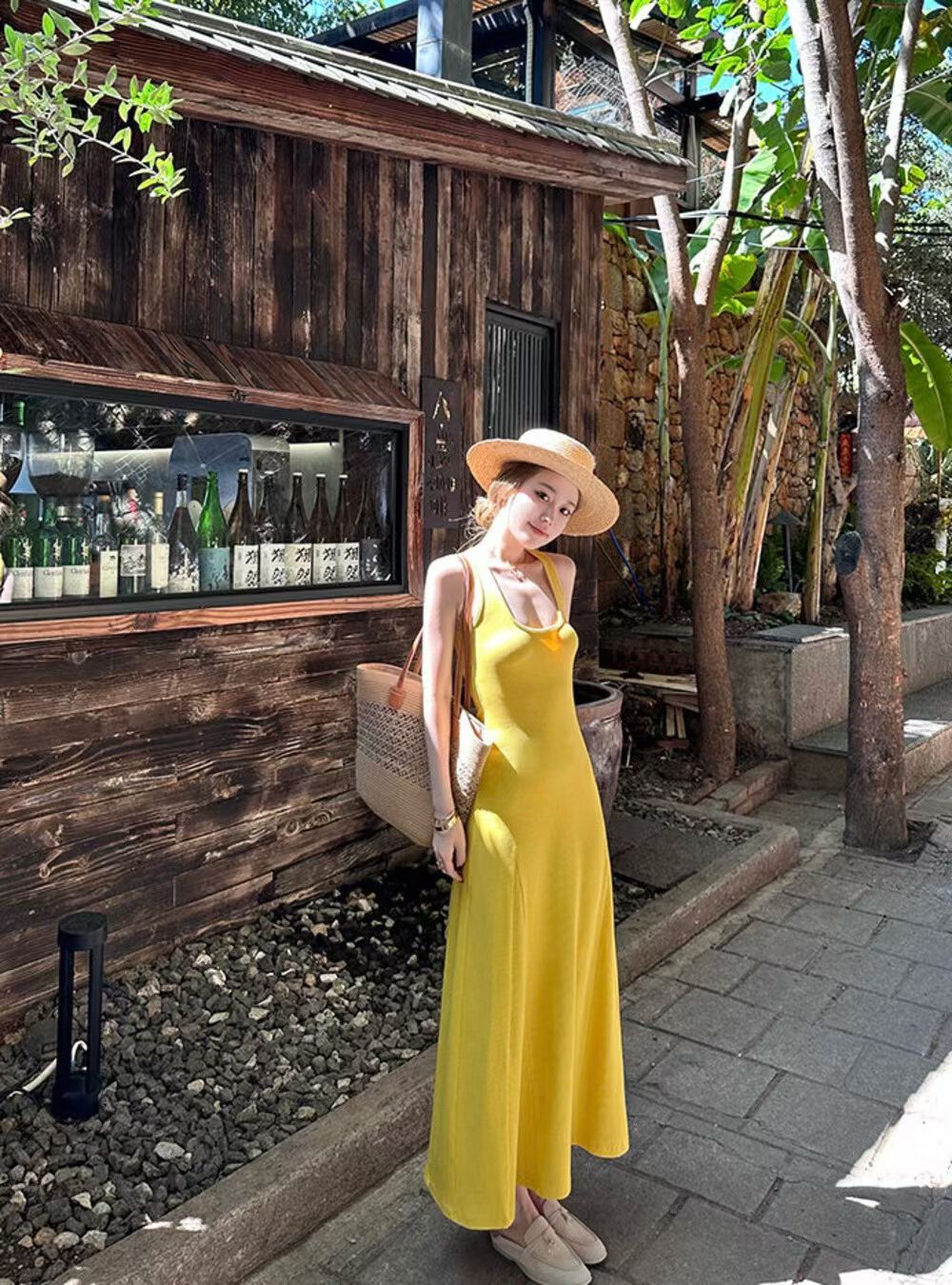 YJ - 紙片人顯瘦坑條背心連身裙/洋裝 1133#
