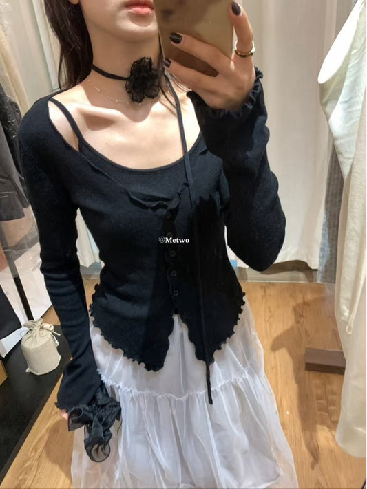 ขายหมดแล้วMETWO> 純欲帶花針織假兩件 8678#