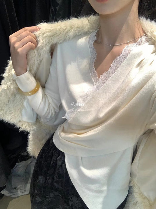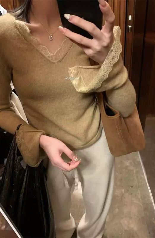 การลดราคาMETWO> 奶茶蕾絲毛衣衫 2224#