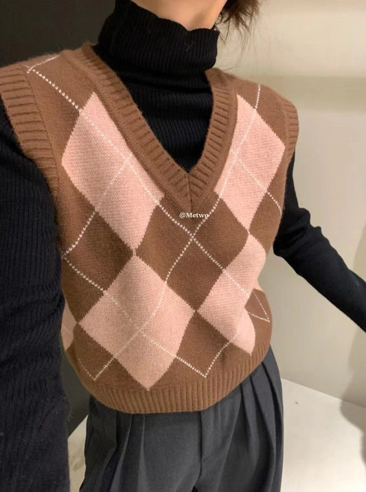 การลดราคาMETWO> 菱格馬甲毛衣3色 8288#