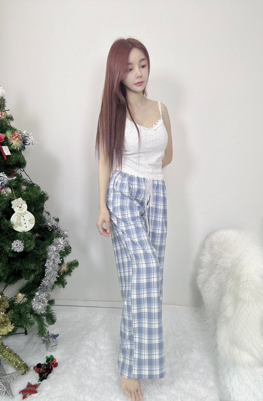 การลดราคาNENE - 蕾絲帶格子休閒褲 3009#