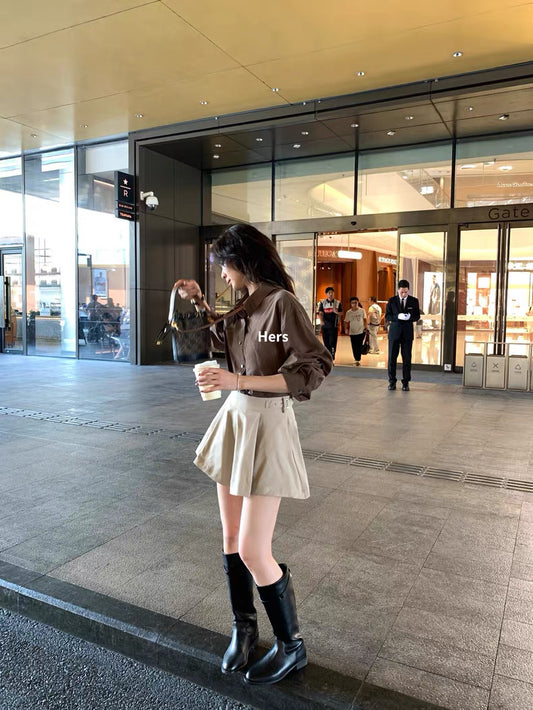 การลดราคาHERS - 卡其綁帶設計感直筒半裙 92173#