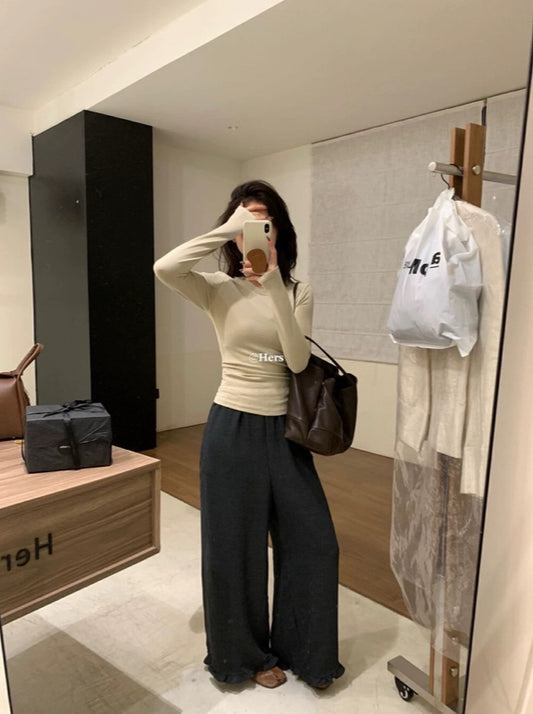 Giảm giáHERS>#純色花邊闊腿褲 10002#