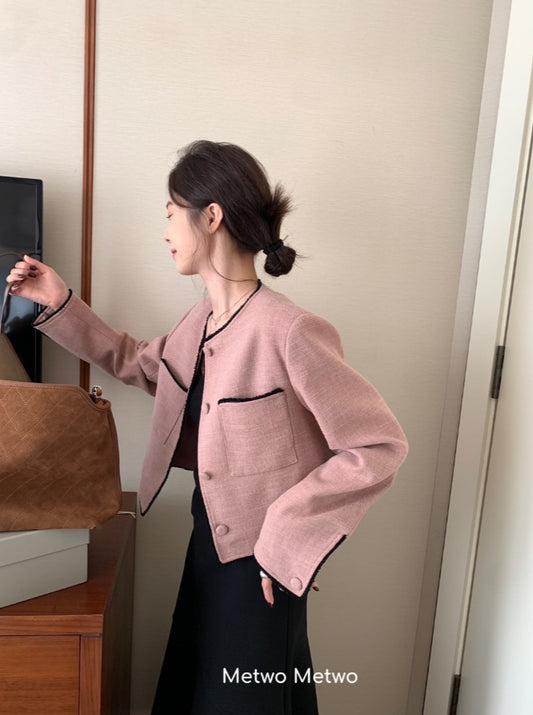 Giảm giáMETWO>鬚邊拼色小香外套 8514#