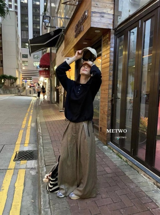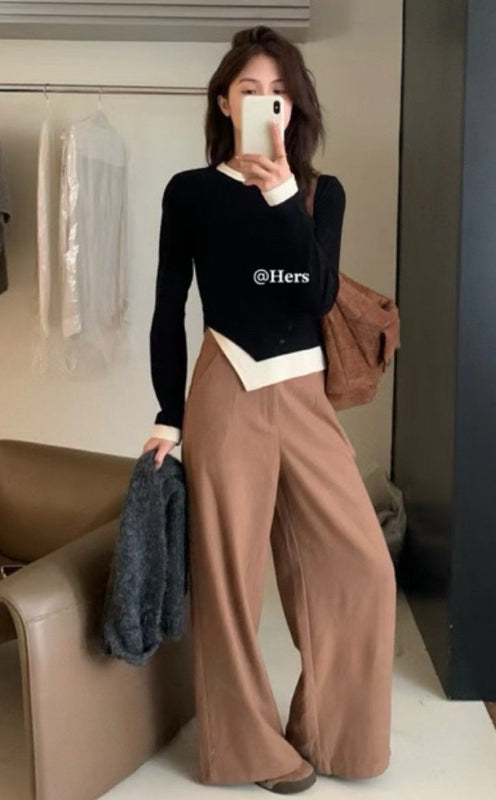 Giảm giáHERS> 質感嘎嘎好的呢子闊腿褲 1714#